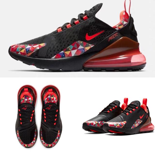 新款air max270还将新年的气息融入到鞋子的设计中。鞋面上展示由十二种中国元素组成的拼接图案,在形式和意义上与传统年画相似。鞋面传统的“蝴蝶结”图案也是耐克向中国春节致敬。