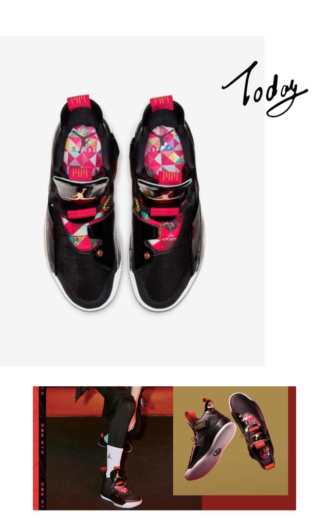 与上面“百衣”鞋的复刻版相比,这双AIR JORDAN XXXIII鞋内的“百衣”更加华丽,鞋侧还标有“吉海”字样,过年的气息仿佛从球场上吹来。