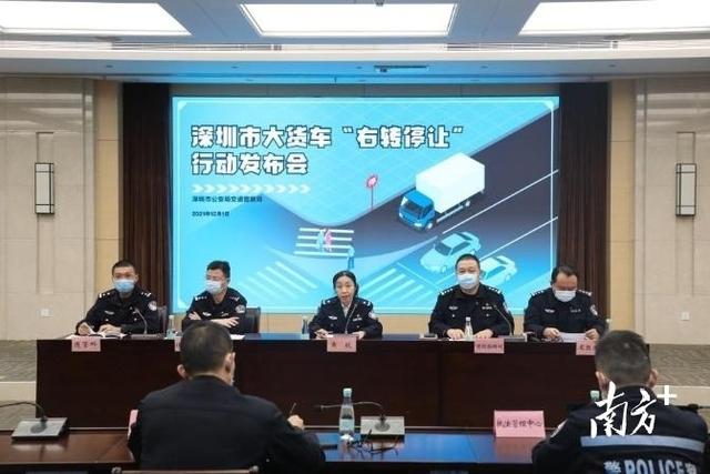 12月1日,深圳市交警局联合各主管部门、行业协会,召开“大货车‘右转、停车’行动大会”,向各货运企业和大货车驾驶员发出“右转、停车”倡议。即大型车辆在路口右转时,无论前方是否有行人、非机动车过斑马线,都要在斑马线停止线前2米停车等候。以后深圳右转的大货车都要查。
