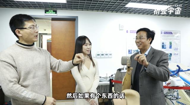 郝拜访正在进行机械骨骼研究的清华大学纪(右一)教授。