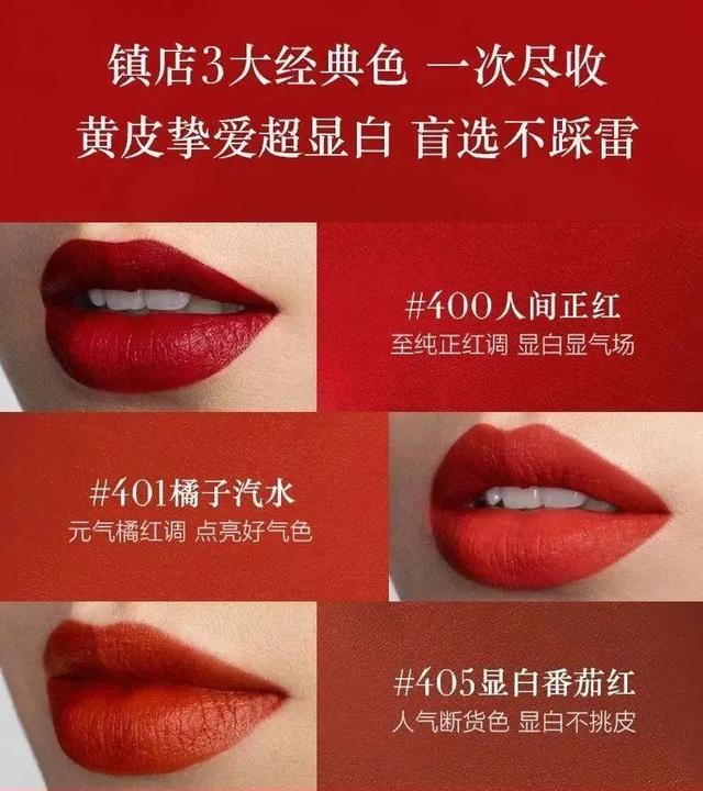 那些经典的,爆炸的,不张扬的颜色,比如烂番茄色#405,红颜色# 400...大多是阿玛尼的!