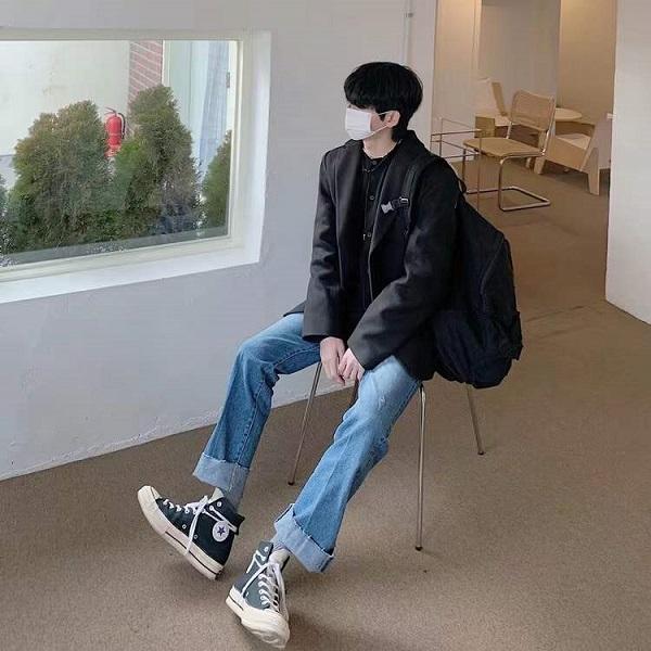 版本越简单,你就越能驾驭任何风格。对于年轻男性来说,选择宽松版的西装、t恤或者内搭衬衫都是不错的选择。搭配翻边牛仔裤,有一定的层次感,整体看起来很帅!
