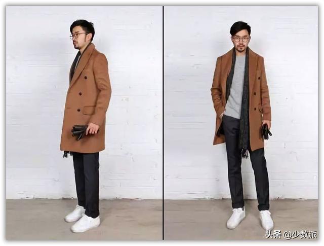 然后是正式场合,一般是西装+衬衫+领带,冬天可能需要一件呢子大衣。