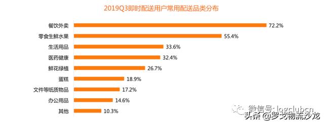新零售市场的发展乃至网购市场的持续增长,对实时物流的需求非常大。在新零售市场中,实时物流企业可以帮助其最小化配送时间,最大化配送服务质量;而在网购市场,快递业务量的不断增加和劳动力的不足之间的矛盾,使得即时物流企业有了扩张的地方,那就是补充末端配送的运输能力。比达咨询发布的《2019年Q3中国即时配送行业发展报告》显示,2019年Q3即时配送市场用户的配送品类偏好中,餐饮外卖仍以高频特征排名第一,占比72.2%;鲜果和日用品分别排在第二和第三位,占比55.4%和33.6%。