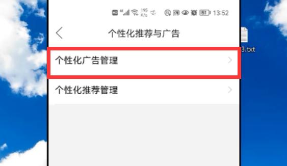 点击“个性化广告管理”进入“个性化广告”界面(如下图)。