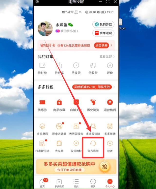 打开手机上的拼多多,然后点击底部导航的“个人中心”进入用户中心(如下图)。