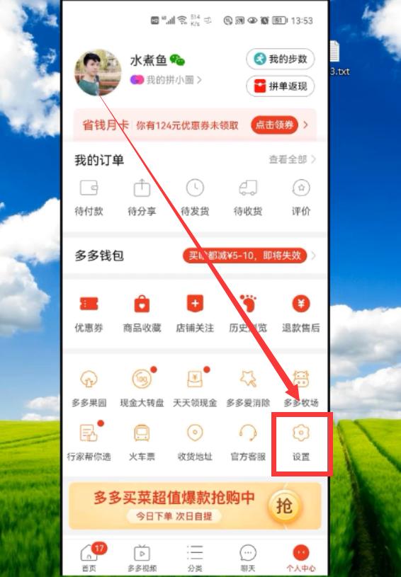 二、关闭拼多多的活动提醒。回到拼多多的个人中心界面(如下图)。