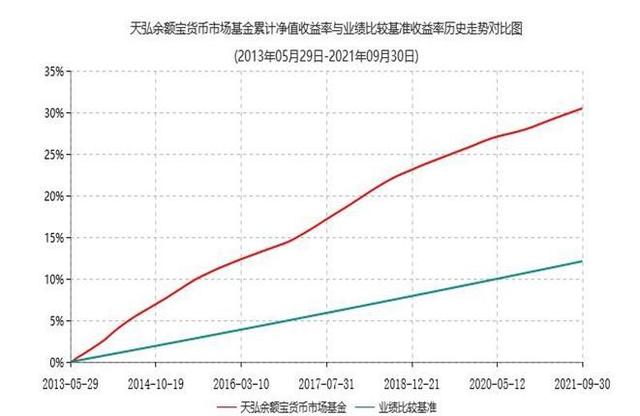 根据历史走势对比图,长期来看,田弘余额宝货币市场基金相对于业绩比较基准仍保持长期稳定的收益优势。