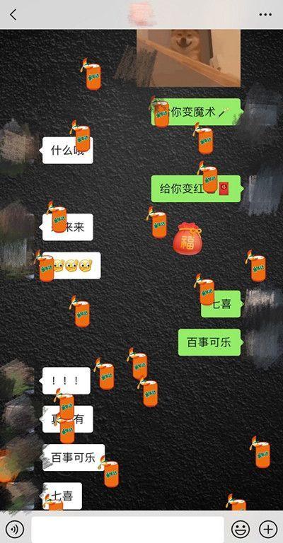 和百事可乐有关的问候语太多了。转到微信对话框,发给亲朋好友。点击掉落的福袋,在红包雨中发现很多惊喜!