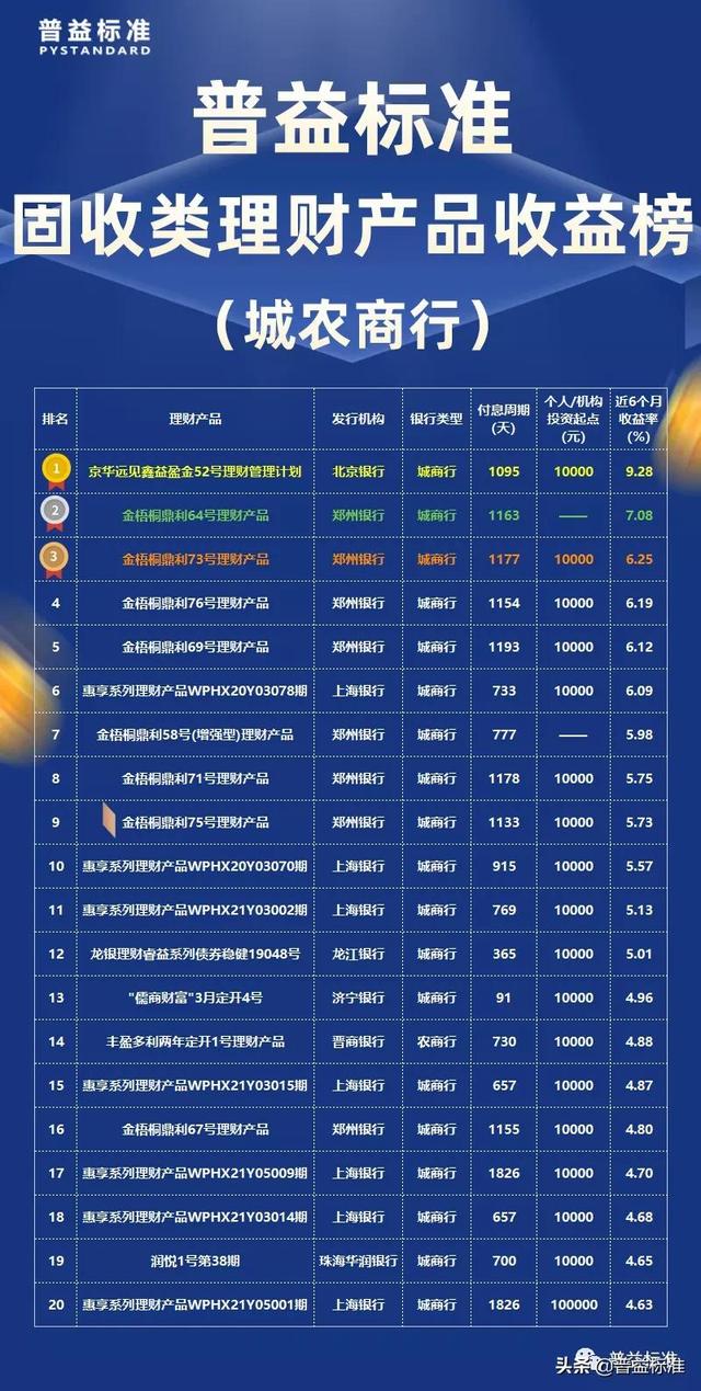 11月城商行固定收益产品收益率排行榜