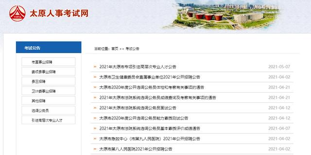 【太原人事考试网】由太原市人力资源和社会保障局主管,负责太原市各类重大人事考试的网上报名、准考证打印、成绩查询,具体包括:太原市直属事业单位招聘、娄烦县事业单位招聘、其他县区招聘、卫计委事业单位招聘、选调生公务员报名、高层次专业人才报名、执业(职业)资格考试报名等。