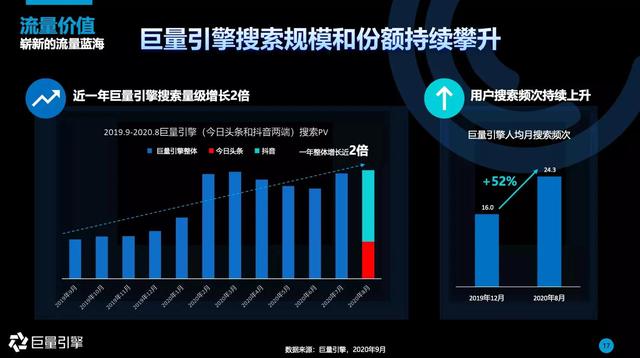 在国外,谷歌是搜索最多的网站,其次是Youtube。同样,在中国,巨大引擎的搜索量在一年内翻了三倍,巨大引擎上的搜索量每天超过5亿次,仅Tik Tok的视频搜索量每天就达到3亿次。引擎发现,视频搜索比简单的图文搜索具有更高的信息传递效率。