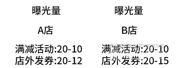 比如A店满20减10,分配额满20减12,B店满20减10,分配额满20减15,那么B店的曝光机会大于A店;