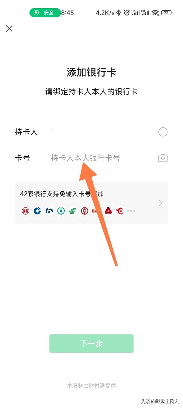 银行卡是持卡人自己的银行卡,也就是页面上显示的持卡人。