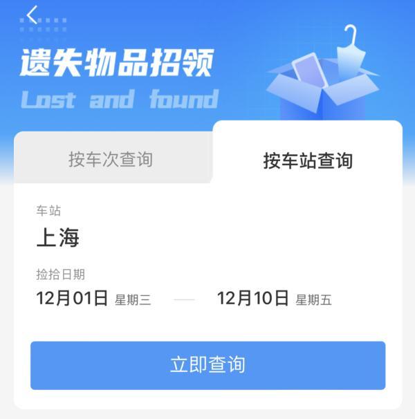 可以通过车站/车次查询领取失物的信息。