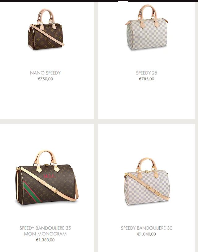 SPEEDY 25带肩带尺寸:25X19X15CM意大利价格为1020欧元。(老花眼,白色棋盘,棕色棋盘)退税后价格约7050人民币。