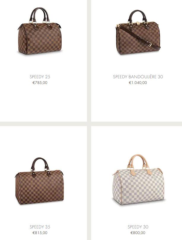 SPEEDY 25露肩尺寸:25X19X15CM意大利价格785欧元。(老花眼,白色棋盘,棕色棋盘)退税后价格5500人民币左右。