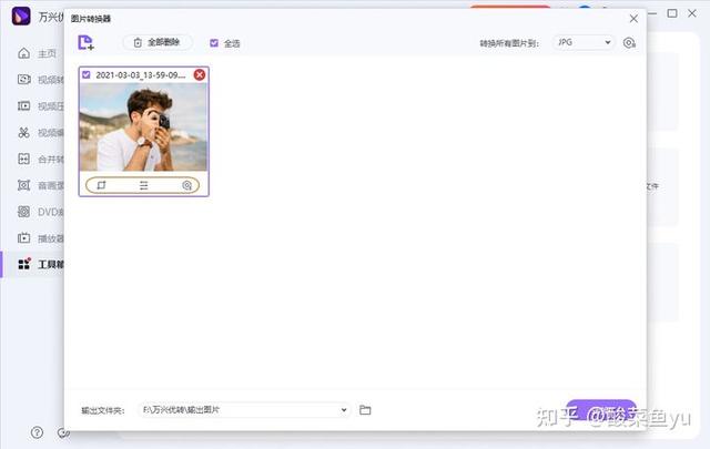 1.启动万兴优转,然后选择左侧工具栏的工具箱部分,在众多功能中选择图片转换器功能。