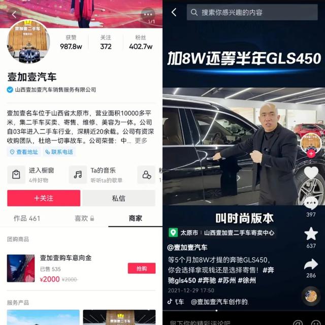 拥有超过400万粉丝的Tik Tok“一加一汽车”专营二手车。这位负责人说,Tik Tok是一把双刃剑。好的和坏的内容可以快速传播,坏的内容往往传播更快。想要获得客户的认可,提高销量和品牌知名度,就不能造假,否则会影响长期经营。