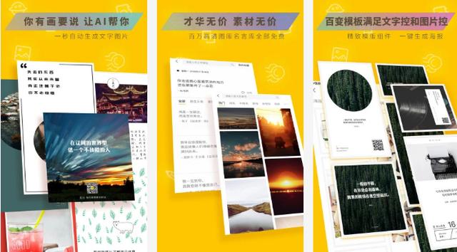 这是一个神奇的APP,可以快速生成文字图片。它拥有强大的图片素材库和文案素材库,可以帮助我们快速匹配素材并进行编辑,从而生成独特的文字图片。