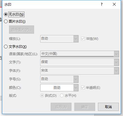 设计]-[水印]中使用。当然我们也可以选择[自定义水印]。