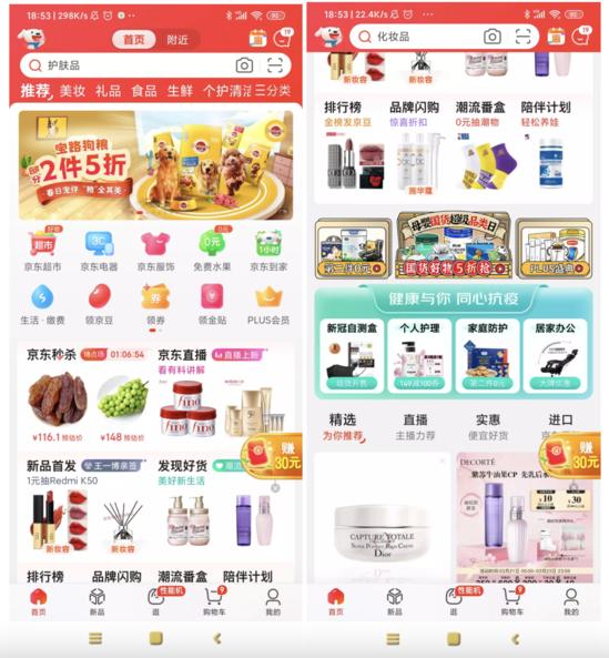 【亿邦原创】3月22日,亿邦动力获悉,日前,JD.COM开始测试首页改版,取消首页焦点图。一位参与内测的服务商告诉亿邦动力,JD.COM改版首页更类似淘宝App首页,JD.COM改版首页目前有1%用户进行内测,618前还会继续优化,目前显示的版本不一定是最终版本。