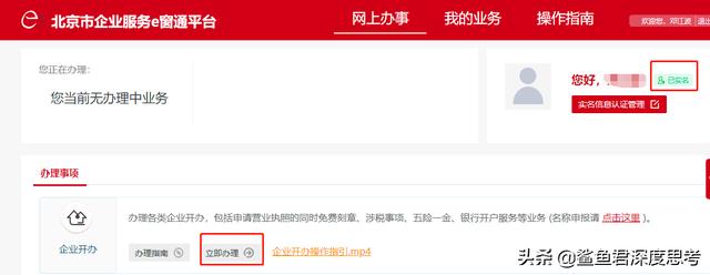 实名认证后,点击立即办理,如下图所示: