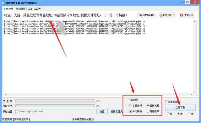 粘贴您刚才复制到的所有产品链接,一次一个链接可以一起下载。