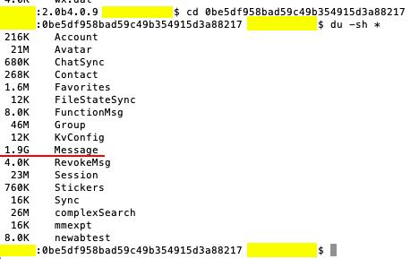 其实熟悉之后,不需要磁盘清理工具就可以直接找到保存微信和QQ聊天记录的地方。比如我上面的图就是路径。先在finder中到达app保存记录的主要位置,然后在这个目录中输入终端,找到体积异常大的目录,再一步一步筛选。