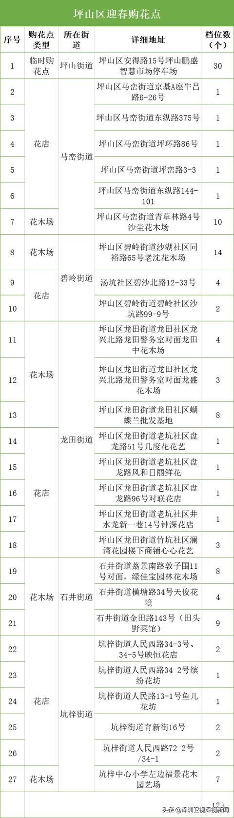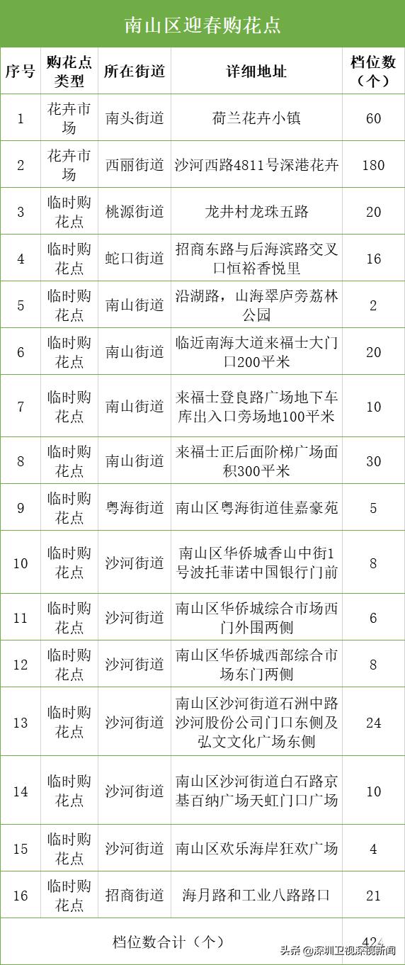 (以上点位为除光明区、盐田区以外的迎春花市购花点。※