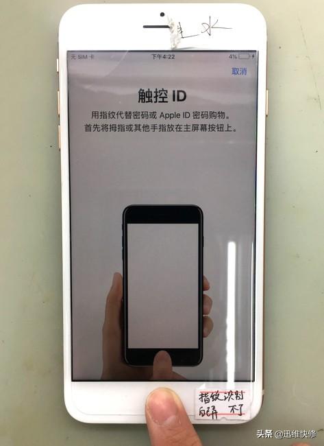 收到一部送修的iPhone 8 Plus,客户描述手机进水后指纹无法识别,加指纹键可以开机,但指纹无法输入。