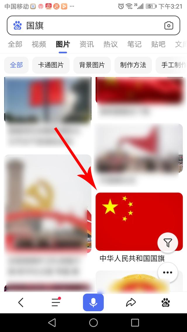 2.打开搜索结果页面,点击“图片”菜单,然后点击“国旗”。