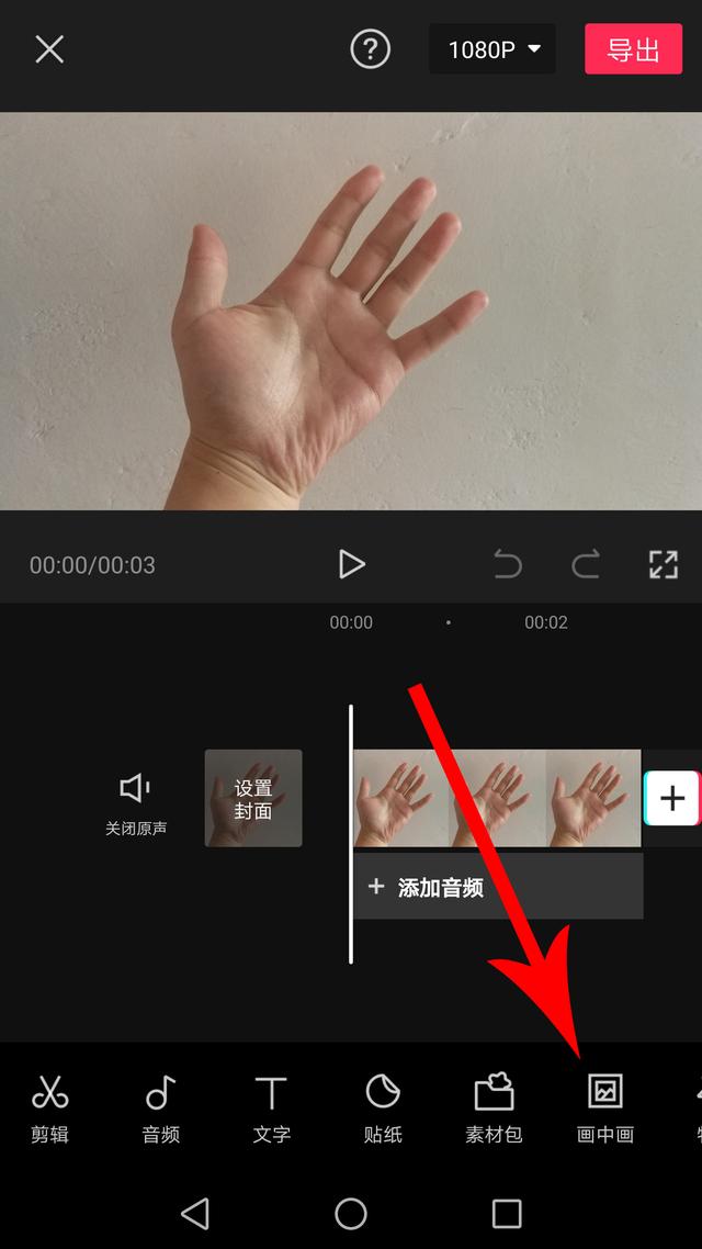 3.打开编辑界面点击“画中画”,再点击“画中画”。