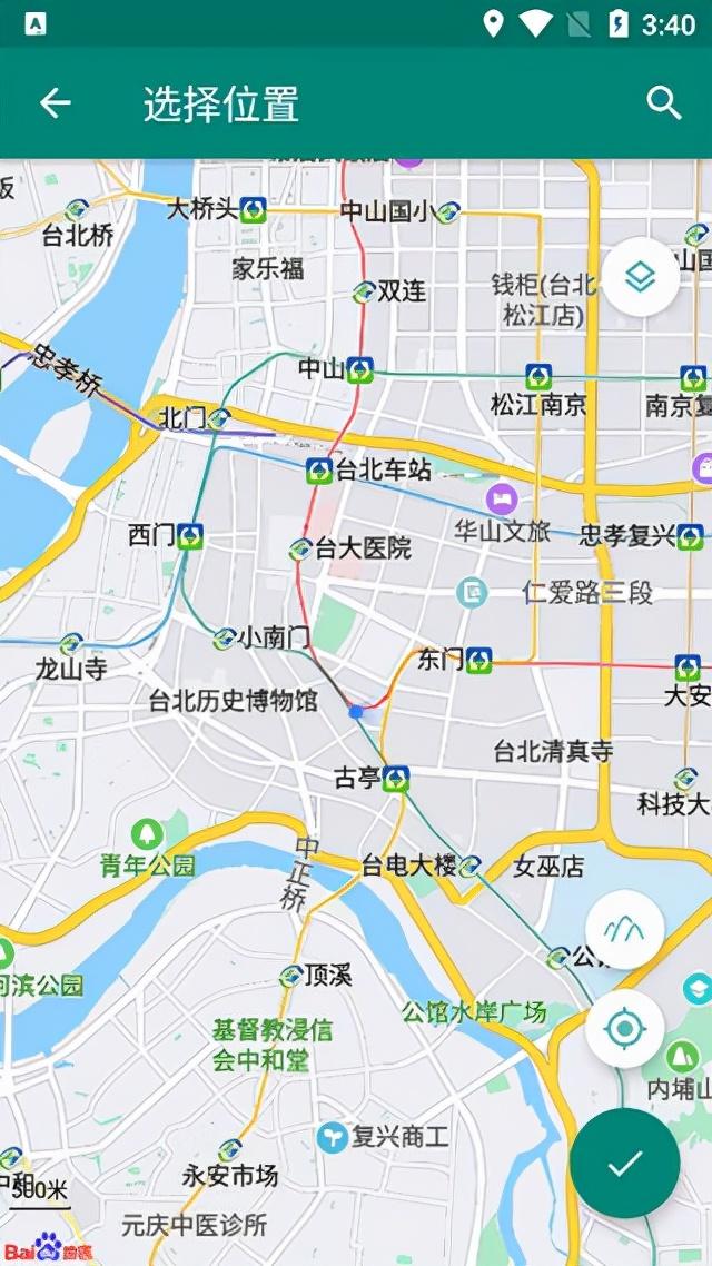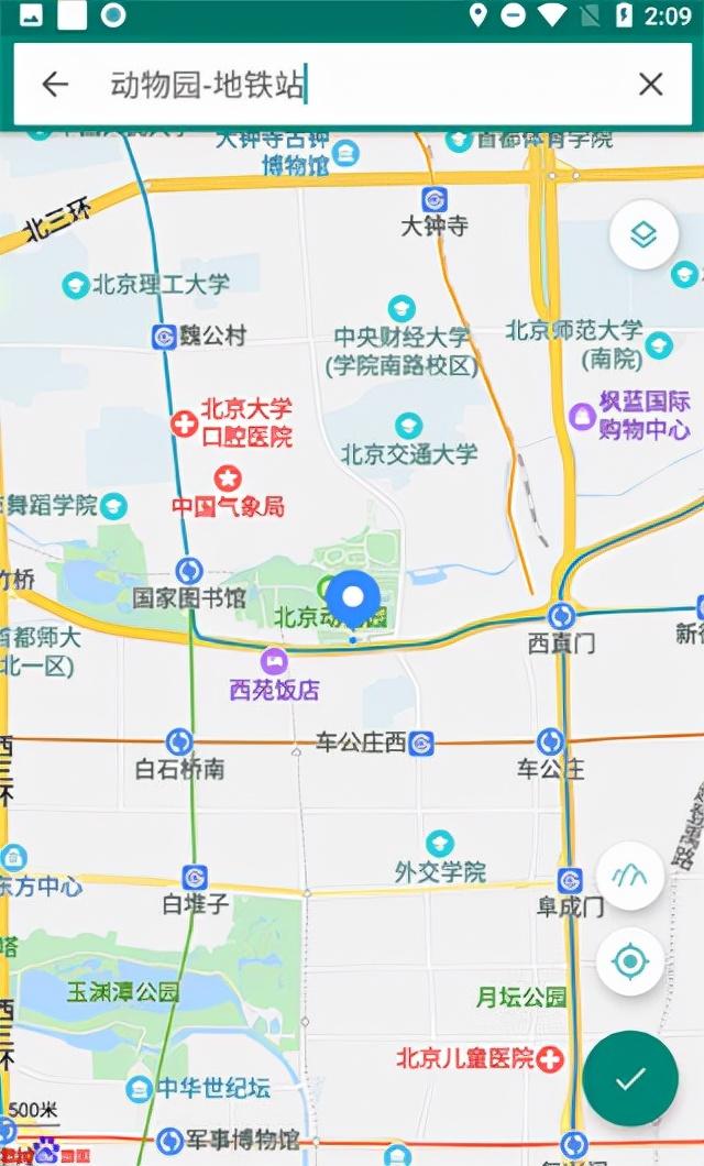 3。在地图上搜索想要模拟的地点,点击右下角的勾选按钮;