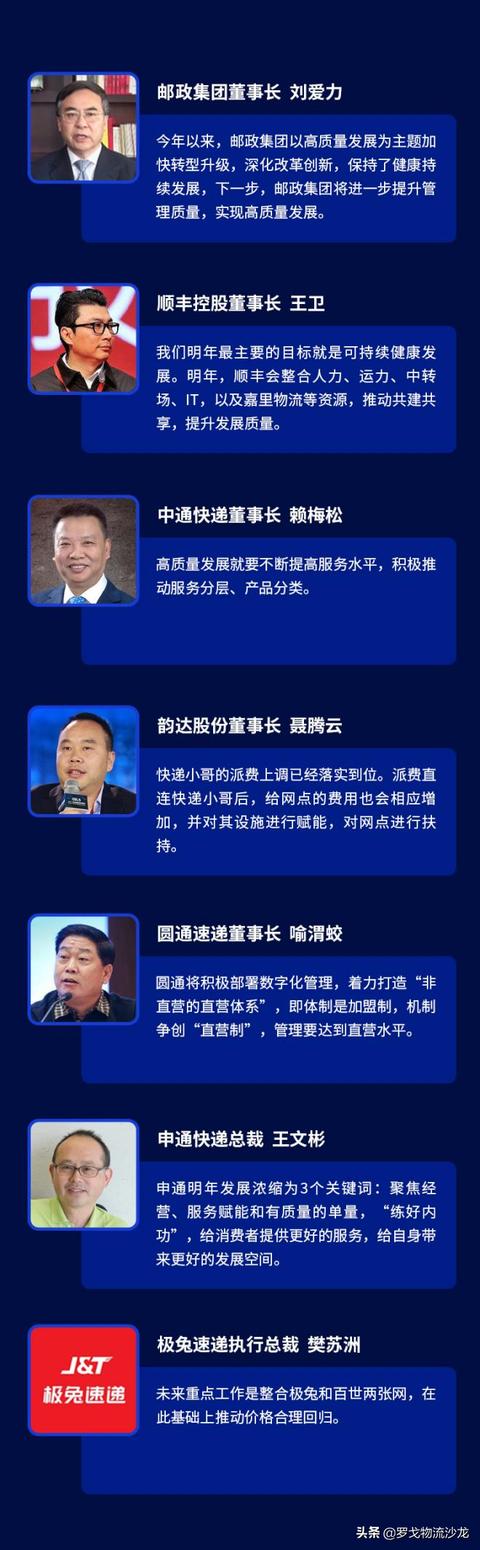 对于明年的发展计划,如何实现高质量发展?快递圈的“大佬们”也纷纷表示要向高质量发展。