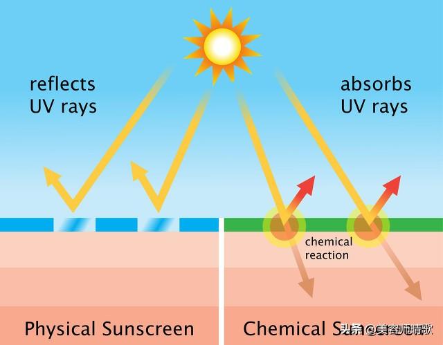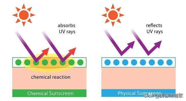 左边是化学防晒原理,右边是物理防晒原理。