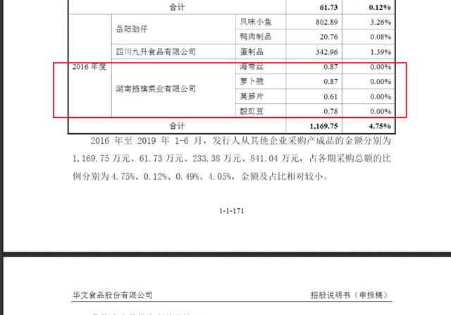 a股上市公司方面,文华食品在招股书(申请稿)中披露,2016年曾向插旗菜业采购过昆布丝、萝卜酥等成品菜,但采购金额很低,只有3.13万元。