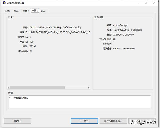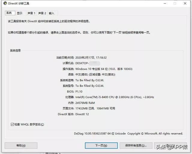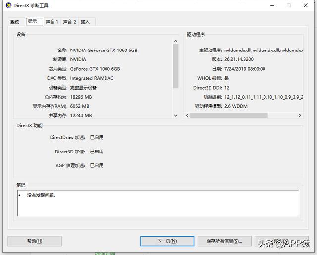 然后调用系统的DirectX诊断工具。