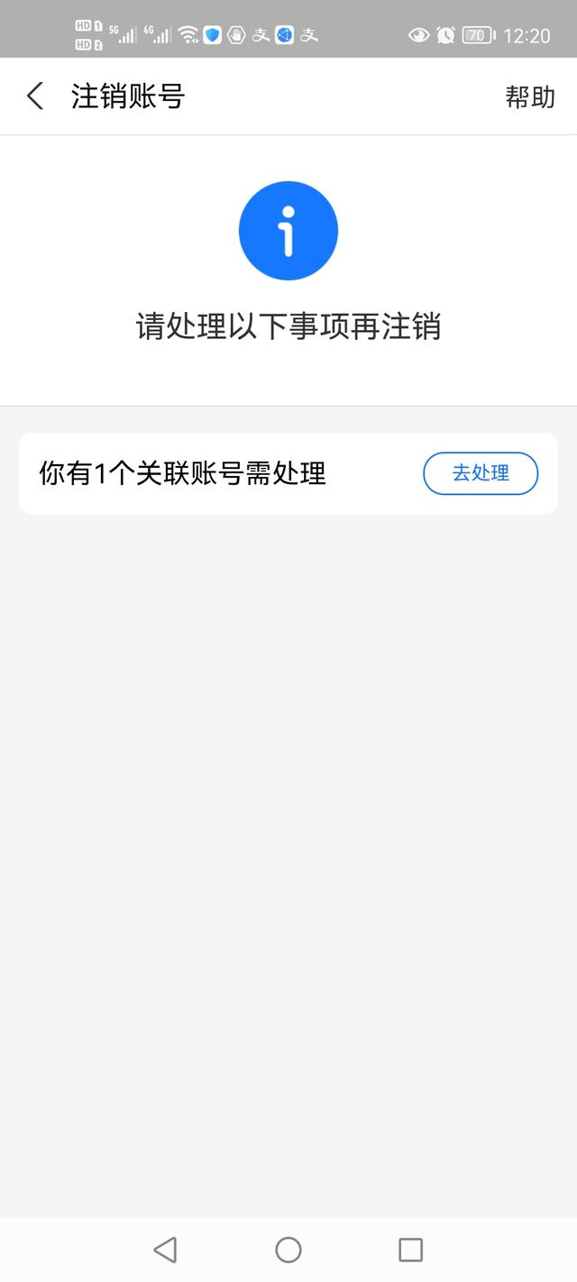 支付宝账号怎么注销(注销支付宝账号麻烦多) 刘轩良 2022-04-20 09:44:21 注销支付宝账户,提示绑定阿里巴巴中文网,根据提示圈圈。反复,解绑账号,解绑账号。当时这个阿里巴巴中文网找不到口绑定,就是提示不行,不能解绑,客服也不满意,但就是解决不了。珍妮令人恼火。 支付宝帐号怎么注销 您可以还会对下面的文章感兴趣 支付宝账号怎么注销后手机号能重新注册(手机号注销后,支付宝一定不能少这个操作) 支付宝账号怎么注销掉绑定手机号(换手机号,绑定的银行卡要记得解绑......) 支付宝账号注销后可以重新注册吗(闲鱼违规后如何去申诉处理?防止违规的小细节) 支付宝帐号怎么注销账号(qq账号怎样注销入口在哪 qq注销账号方法与规则介绍) 手机号注销了支付宝账号怎么注销(手机销号别忘解绑支付宝) 相关文章: 枢纽 施展(施展:《枢纽》要谈论的是,究竟什么是中国,如何理解中国?) 枢纽是什么意思(《枢纽》帮你理解什么是中国) 枢纽怎么读(读《枢纽》夜半写就) 微信能加多少好友上限(微信可以同时实名几个账号,明明白白告诉你) 微信群(这种微信群,赶紧退) 企业微信能加多少好友(企业微信和个人微信有什么区别?企业微信群聊人数上限是多少?) 微信每天能加多少好友(微信提示操作过于频繁怎么办?) 手机微信最多能加多少好友(微信发布“新规定”,这4种行为将会永久封号,已有多人被处理)