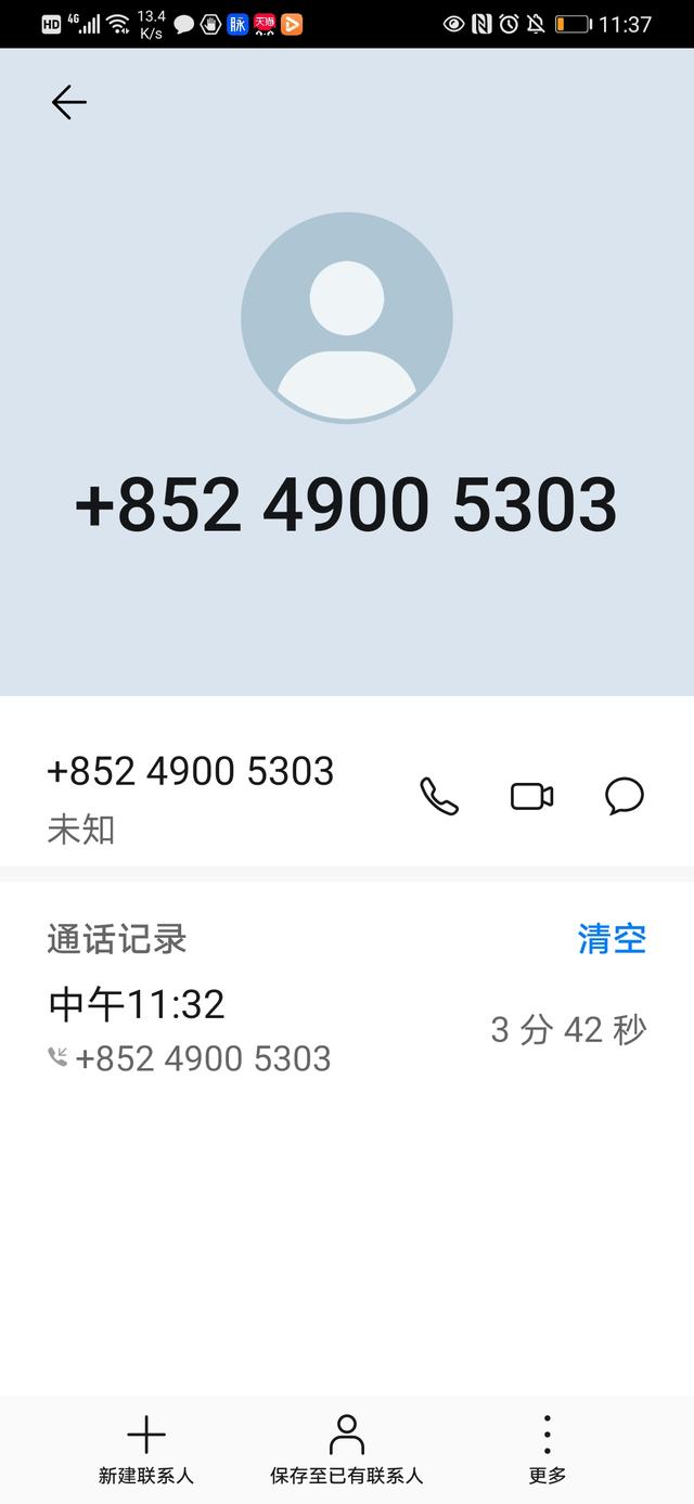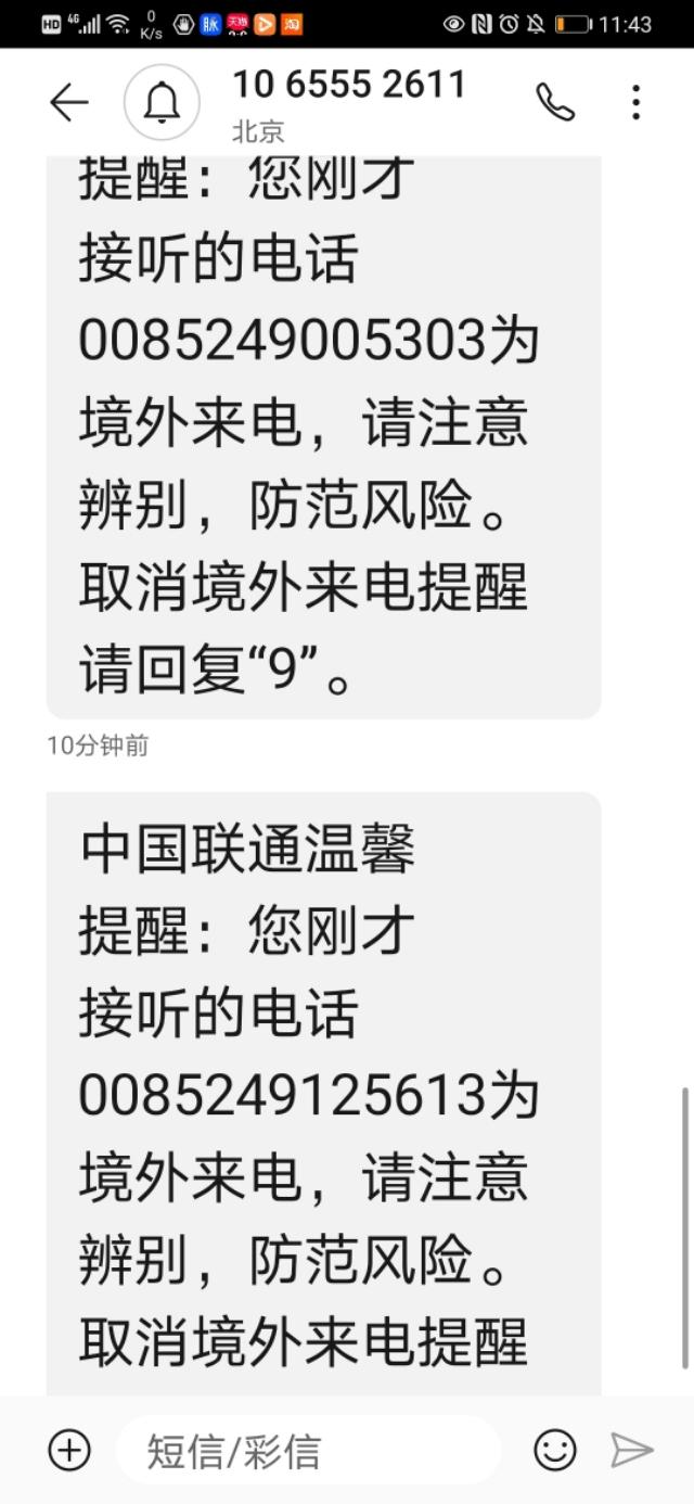 2.运营商也短信提醒,这是境外电话,注意防范。