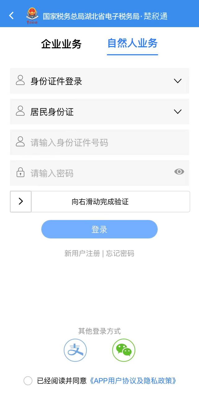 (二)注册自然人可以通过银联、支付宝或微信实名认证注册三种方式进行注册。自然人登录支持“身份证号+密码”登录、支付宝授权登录、微信授权登录。