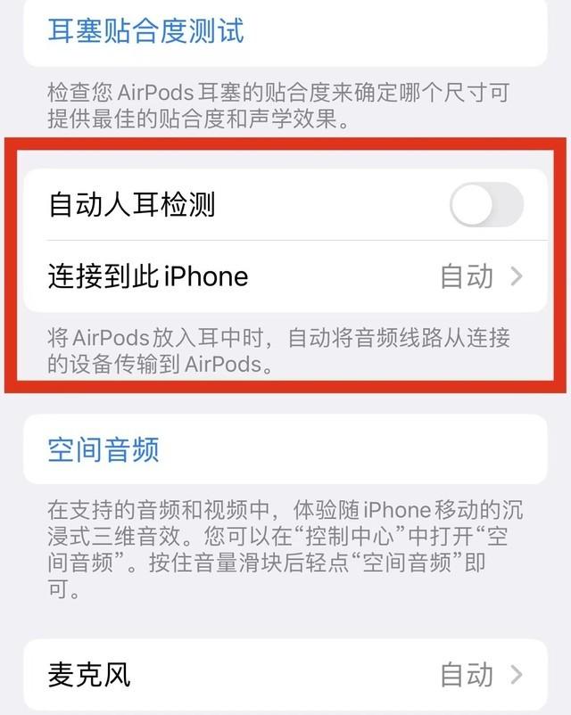 “自动验耳”这个功能可能很多用户都没有注意到。如下图所示,当AirPods放在耳朵里时,该功能可以自动将音频线从连接的设备传输到AirPods。但是,这个函数有一个“Bug”。当用户使用同一个Apple ID登录两台苹果设备(如iPhone)时,AirPods会在两台设备之间频繁切换,给用户带来一定的不便。禁用该功能可以解决这个问题,延长耳机电池的使用寿命。要禁用此功能,请执行以下步骤: