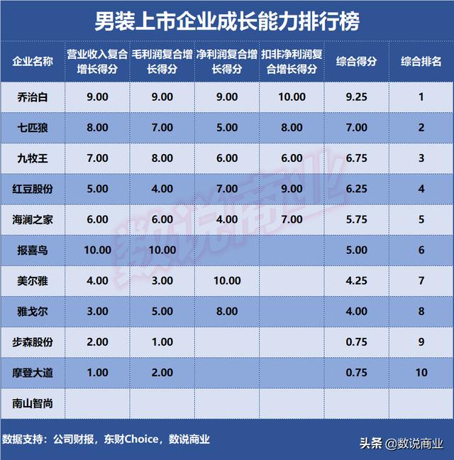 男装上市企业成长能力排名