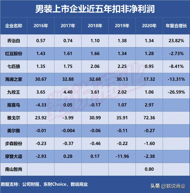 ▲男装上市公司近五年扣非净利润。
