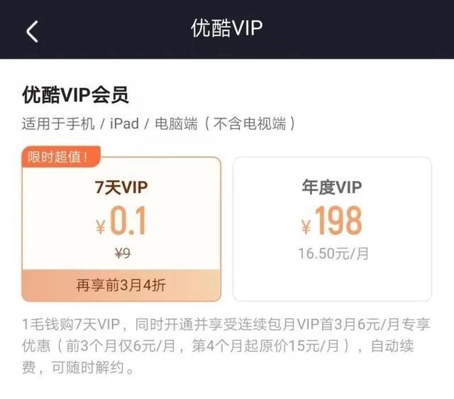 今年2月25日,消费者翟女士在优酷官方APP看到“1分钱抢7天优酷VIP会员”的活动,觉得很划算,于是选择了开通支付。她以为7天之后,VIP权限就自动解除了,所以也就没再理会。