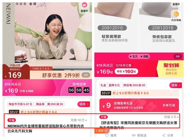 一个没有尺码的内外文胸只需要做10种不同的颜色,6.18依然可以打败月销10万+的中国内衣之父安李芳。就代言人而言,这款文胸的代言人金晶的粉丝群与安李芳的代言人宋茜相差甚远。