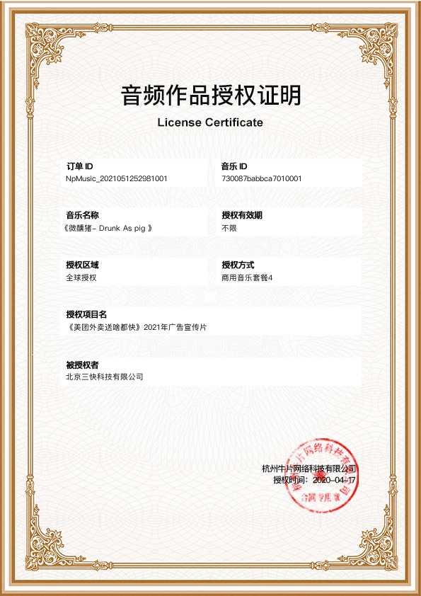 对于购买的音乐,还可以查看授权证书,真正有保障: