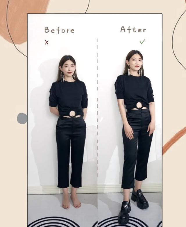 相对来说,运动鞋对腿型修饰的效果不明显,但是腿长是一定的,搭配阔腿裤视觉上会有延长的感觉。