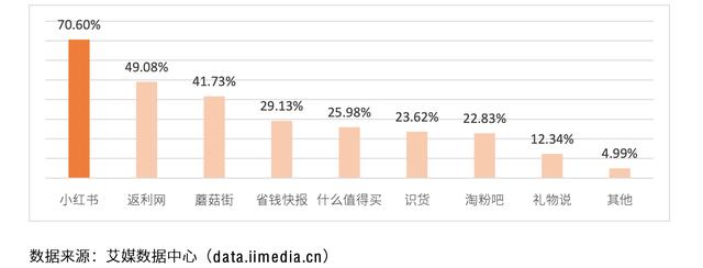 根据下图《2020年中国消费者导购电商平台分布》可以看出,2020年中国消费者使用最多的电商平台是小红书,占比高达70.6%。返利网排名第二,占比49.8%。所以小红书抢占了大部分导购电商平台的市场份额。