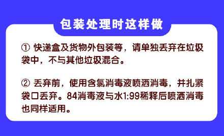 科学收取快递,做好健康防护。如果快递不急,也可以放在通风向阳的地方,静置一会再封,别忘了洗手!